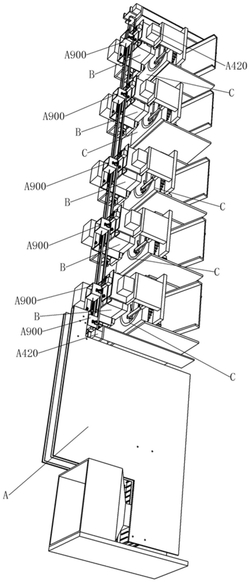 1.一种输送模块,其特征在于,包括第一输送立板、第二输送立板、输送皮带、输送小车,所述第一输送立板、第二输送立板各有两块且相互平行安装,两块第二输送立板安装在两块第一输送立板之间;两块第一输送立板分别与多根输送皮带轴可圆周转动装配,每根输送皮带轴位于第一输送立板、第二输送立板之间的部分上套装有输送皮带轮,输送皮带分别绕过各个输送皮带轮并构成带传动机构;所述输送皮带上设置有多个沿着其长度方向上设置的输送皮带凸起,两个输送皮带凸起之间构成的间隙用于输送茶叶;