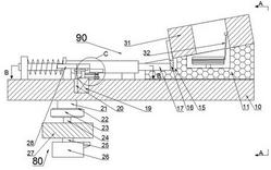 1.一种河道防溺水监控设备,包括第二支架,其特征在于:所述第二支架右端固定设有第一支架;所述第一支架上端固定设有第一固定轴,所述第一固定轴上端固定设有第一固定齿轮,所述第一固定轴上转动设有载物板,所述载物板上端设有防溺水机构,所述载物板下端设有监控机构,所述载物板上端固定设有动力管、第一固定板,所述动力管内设有第二滑槽,所述第二滑槽内滑动设有穿过所述第一固定板的动力杆,所述动力杆上固定设有固定环,所述固定环左端与所述第一固定板右端之间连接设有第一弹簧,所述动力杆上设有若干节齿节,所述动力管前端固定设有前固定箱,所述前固定箱内下端壁上转动设有穿过所述前固定箱下端壁第五转动轴,所述第五转动轴上固定设有第一卡块,所述第一卡块后端能卡住所述齿节,所述第一卡块右端与所述前固定箱内腔右端连接设有第二弹簧,所述动力管后端固定设有后固定箱,所述后固定箱内腔上下端壁之间固定设有第二固定轴,所述第二固定轴上转动设有第一连杆,所述第二固定轴上端固定设有第四锥齿轮,所述第一连杆上端从前到后依次转动设有第七转动轴、第八转动轴,所述第一连杆上端固定设有第一固定块,所述第一连杆后端设有第一滑槽,所述第一固定块前后端壁间转动设有第六转动轴,所述第六转动轴从前到后依次固定设有第一锥齿轮、第三锥齿轮,所述第七转动轴上从上到下依次固定设有第二锥齿轮、第三齿轮,所述第八转动轴上从上到下依次固定设有第二卡块、第四齿轮,所述第三锥齿轮能够与所述第四锥齿轮啮合,所述第一锥齿轮能够与所述第二锥齿轮啮合,所述第三齿轮能够与所述第四齿轮啮合,所述第二卡块前端能卡住所述齿节,所述载物板上端固定设有动力电机,所述动力电机左端固定设有液压杆,所述动力电机上端转动设有第三转动轴,所述液压杆上端固定设有第二连杆,所述第二连杆能够带动所述第三转动轴上下移动,所述第三转动轴上端固定设有第二齿轮,所述载物板上端转动设有第二转动轴,所述第二转动轴从上到下依次固定设有第三皮带轮、第四皮带轮,所述第二齿轮分别能够与所述第一齿轮、所述第一固定齿轮啮合,所述载物板上端从前到后依次转动设有发射转动轴、第四转动轴,所述发射转动轴上固定设有第五皮带轮,所述第五皮带轮与所述第四皮带轮之间连接设有第三皮带,所述第五转动轴与所述发射转动轴之间连接设有棘轮机构,所述第四转动轴从上到下依次固定设有第一圆盘、第六皮带轮,所述第六皮带轮与所述第三皮带轮之间连接设有第二皮带,所述第一圆盘上端固定设有第一固定杆,所述第一固定杆能够在所述第一滑槽内滑动。