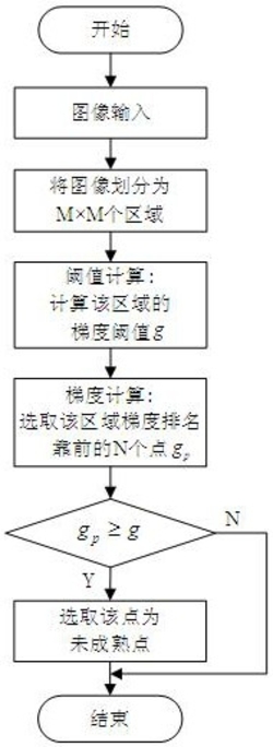 S2.2:在每个区域内选取像素梯度值最大的前N个点,像素梯度G(x,y)定义如下:G(x,y)=dx(i,j)+dy(i,j)其中,I(i,j)为坐标为(i,j)的像素点的像素值,dx(i,j)为坐标为(i,j)的像素点在x方向的像素值,dy(i,j)为坐标为(i,j)的像素点在y方向的像素值;