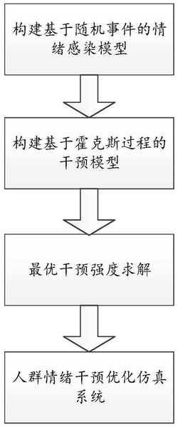 模型构建模块,其用于构建基于构建基于随机事件的情绪感染模型,根据事件发生强度对人群情绪感染的过程进行量化;构建基于霍克斯过程的干预模型,通过所述干预模型根据人群事件发生强度的变化自适应地调整干预强度;
