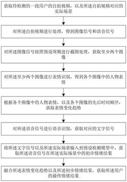 1.一种基于语音识别和图像识别的情绪检测方法,其特征在于,包括:获取待检测的一段用户的自拍视频,以及所述自拍视频对应的实际场景;
