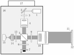 所述的干涉测量模块包括安装在安装板上的线偏振激光器、二分之一波片、扩束准直系统、偏振分光棱镜、四分之一波片、参考平面镜、望远镜、线偏振片、远心成像系统、压电陶瓷和探测器;