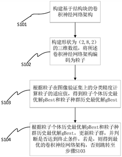 1.一种基于粒子群算法的深度卷积神经网络架构搜索方法,其特征在于:具体包括以下步骤:S101:构建基于结构块的卷积神经网络架构;