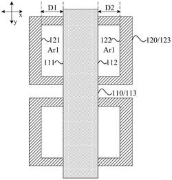 4.根据权利要求1所述的套刻对准标记,其特征在于,所述当层标记图案包括至少一个第一实体图案,所述前层标记图案包括至少两个第二实体图案,所述第一实体图案和所述第二实体图案位于同一层上且间隔设置,在所述第二方向上,位于所述第一实体图案两侧的两个第二实体图案中,在第一侧的第二实体图案中,在第二方向上距离所述第一实体图案最近的侧边作为第一侧边,在第二侧的第二实体图案中,在第二方向上距离所述第一实体图案最近的侧边作为第二侧边。