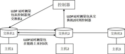 h)查询交换机的流表中是否有与该延时测量包匹配的流表项,如果没有,该交换机将该延时测量包转发给控制器,如果有,该交换机将该延时测量包按流表项定义的规则进行转发,由于延时测量包是LLDP包,交换机没有LLDP包匹配的流表项,所以,延时测量包最后被转发到控制器,也就是集中控制点进行延时的回收和统计;
