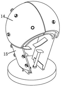 1.一种绳驱采摘机器人末端执行器,其特征在于:该末端执行器包括设置在底座上的一对抓手、设置在其中一个抓手上的切刀、分别带动两个抓手运动以使抓手开合来抓取果实的两个第一绳驱机构、带动切刀转动以切断果梗的第二绳驱机构;所述抓手包括可摆动地定位底座(1)上的支撑板(2)以及设置在支撑板上的半球面形抓板(3),两个抓板的内侧相对布置;所述切刀(4)通过转轴可转动地定位在其中一个抓板的外侧;所述第一绳驱机构包括第一驱动单元、传递第一驱动单元动力以使抓手闭合的第一驱动绳(11)、带动抓手张开的弹性组件;所述第二绳驱机构包括第二驱动单元、传递第二驱动单元动力以使切刀转动切断果梗的第二驱动绳(12)、带动切刀反向转动的拉簧(5);