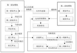 第二获取模块,用以通过扫地机器人的红外传感器获取扫地机器人与障碍之间的距离数据以及扫地机器人原地转弯角度;
