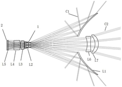 第一通道反射透镜(L1)为反射镜,包括第一通道反射透镜反射面(S1),可将第一通道物方入射光反射经过光阑(1)进入1号后继透镜(L2)、2号后继透镜(L3)、3号后继透镜(L4)以及4号后继透镜(L5),1号后继透镜(L2)包括1号后继透镜前表面(S2)和1号后继透镜后表面(S3),2号后继透镜(L3)包括2号后继透镜前表面(S4)和2号后继透镜后表面(S5),3号后继透镜(L4)包括3号后继透镜前表面(S6)和3号后继透镜后表面(S7),4号后继透镜(L5)为滤光片,包括4号后继透镜前表面(S8)和4号后继透镜后表面(S9),4号后继透镜前表面(S8)和4号后继透镜后表面(S9)中至少有一个镀覆有红外截止滤膜,第二通道1号透镜(L6)包括第二通道1号透镜后表面(S10)和第二通道1号透镜前表面(S11),第二通道2号透镜(L7)包括第二通道2号透镜后表面(S12)和第二通道2号透镜前表面(S13)。