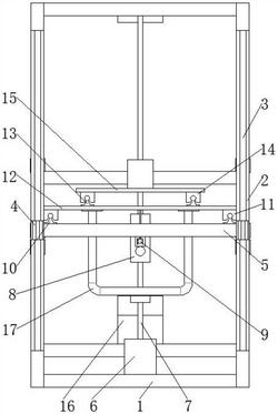1.一种多功能养花晾晒架,包括连接杆(1),其特征在于:所述连接杆(1)的两端分别均安装有支撑杆(2),且支撑杆(2)的外壁安装有第一导轨(3),并且第一导轨(3)的外壁安装有第一滑块(4),同时第一滑块(4)的外壁安装有安装板(5),所述连接杆(1)的底部安装有步进电机(6),且步进电机(6)的输出端安装有丝杆(7),并且步进电机(6)的外壁安装有安装板(5),所述支撑杆(2)的一侧安装有固定板(8),且固定板(8)的一侧安装有推杆电机(9),并且推杆电机(9)的一端安装有安装板(5),所述安装板(5)的顶部安装有第二导轨(10),且第二导轨(10)的外壁安装有第二滑块(11),所述第二滑块(11)的顶部安装有第一放置板(12),且第一放置板(12)的顶部安装有第三导轨(13),所述第三导轨(13)的外壁安装有第三滑块(14),且第三滑块(14)的顶部安装有第二放置板(15),所述第一放置板(12)的底部安装有晾衣架(17),所述连接杆(1)的一侧安装有控制芯片(16),所述支撑杆(2)通过第一导轨(3)和第一滑块(4)与安装板(5)构成滑动结构,所述安装板(5)与固定板(8)通过推杆电机(9)构成伸缩结构,所述步进电机(6)与安装板(5)通过丝杆(7)构成升降结构,当需要对衣服和植物进行晾晒时,将衣服挂在晾衣架(17)上,将植物放入第一放置板(12)和第二放置板(15)的顶端,然后启动按下启动按钮,使控制芯片(16)启动步进电机(6),步进电机(6)驱动丝杆(7)旋转,丝杆(7)旋转带动安装板(5)外壁的第一滑块(4)在支撑杆(2)外壁的第一滑轨内向上滑动,通过第一滑轨可以对安装板(5)的移动范围进行限定,防止安装板(5)在升降过程中倾斜,然后在升降板上升的过程中带动第一放置板(12)和第二放置板(15)向上移动,当升降板移动到合适位置时,步进电机(6)关闭,丝杆(7)停止转动,升降板、第一放置板(12)和第二放置板(15)的位置固定,然后启动推杆电机(9),推杆电机(9)推动第一放置板(12)向前移动,使第一放置板(12)底部两侧的第二滑块(11)在安装板(5)的顶部的第二导轨(10)的外壁滑动,第一放置板(12)带动底部的晾衣架(17)向外移动,晾衣架(17)带动衣服向外移动进行晾晒,同时第一放置板(12)移动的过程中带动第二放置板(15)向外移动,使第二放置板(15)带动植物向外移动,当需要对植物和衣服进行收取时,控制芯片(16)启动推杆电机(9),使推杆电机(9)反方向移动,第二滑块(11)、第一放置板(12)、第三滑块(14)、第二放置板(15)和晾衣架(17)反方向移动,带动衣服和植物收回,然后推杆电机(9)停止运行,控制芯片(16)启动步进电机(6),使步进电机(6)反转,步进电机(6)带动丝杆(7)反转,使安装板(5)、第一放置板(12)和第二放置板(15)向下移动带动衣服和植物下降,将衣服和植物收回。