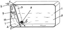 油箱(1)中设有一块纵向倾斜隔板(3),把油箱(1)分成四周密封隔离的大小两个油箱,即分成注入油小箱(4)和装油大箱(5);