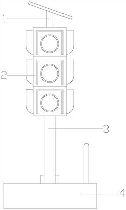 1.一种安全性高的智能交通信号灯,其结构包括太阳能面板(1)、信号灯主体(2)、灯杆(3),其特征在于:还包括自复位移动底座(4),所述自复位移动底座(4)为矩形结构且呈水平放置,所述灯杆(3)垂直连接于自复位移动底座(4)顶部,所述信号灯主体(2)通过螺栓固定于灯杆(3)顶端,所述信号灯主体(2)顶部设有太阳能面板(1);