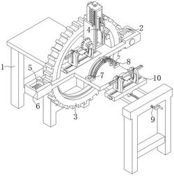 所述装夹结构(10)包括底板(1001),所述底板(1001)一侧贯穿有与底板(1001)转动连接的第三螺纹杆(1002),所述第三螺纹杆(1002)外表面螺纹连接有两与底板(1001)滑动配合的装夹板(1003),所述装夹板(1003)一表面开设有第四矩形通口(1012),所述第四矩形通口(1012)内底面固定有第四螺纹杆(1013),相邻两所述第四螺纹杆(1013)外部通过第二螺母(1004)固定有压杆(1005),所述压杆(1005)上表面开设有两第三矩形通口(1007);