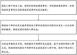 以收益率最低为目标构建目标函数,采用人工蜂群最优干预积极/消极情绪感染算法求解目标函数,得到干预强度的最优参数,进而得到最优干预事件发生强度;基于当前时刻的人群状态,根据得到的最优干预事件发生强度进行人群干预,得到干预后的人群状态;