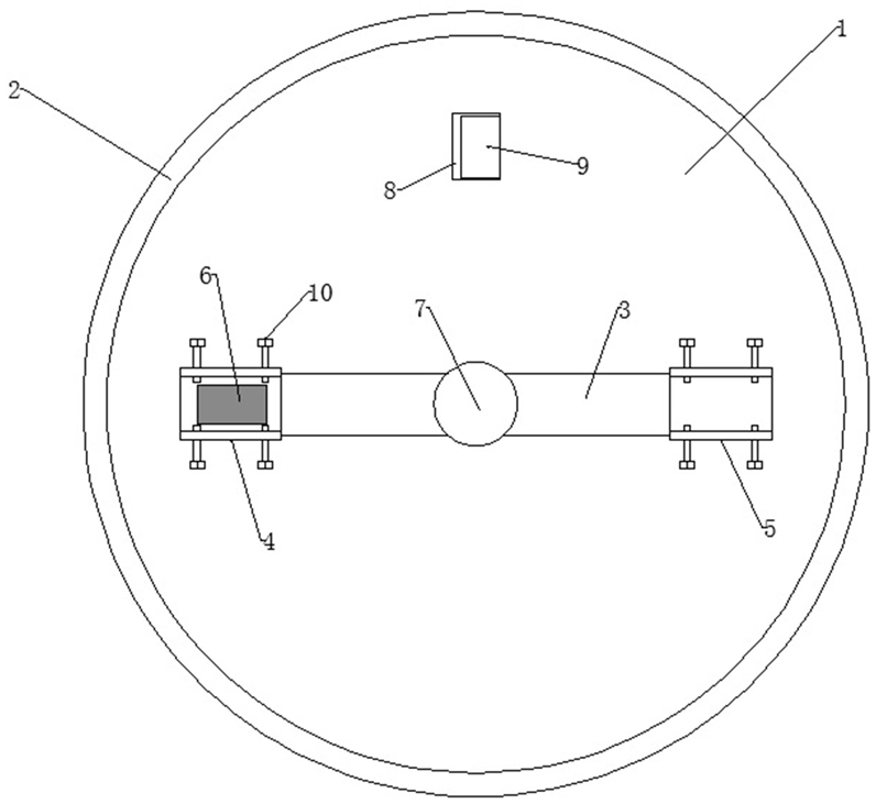 5.根据权利要求4所述的一种高温加速度传感器的试验装置,其特征在于,所述发热片(6)的电源(7)安装在旋转臂(3)中心,发热片(6)与电源(7)的导线沿旋转臂(3)布置。