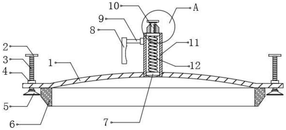 6.根据权利要求5所述的恒温水浴锅伸缩盖结构,其特征在于,两个所述螺杆(3)的顶端均焊接有转柄(2),且两个螺杆(3)的底端均通过轴承转动连接有吸盘(5)。