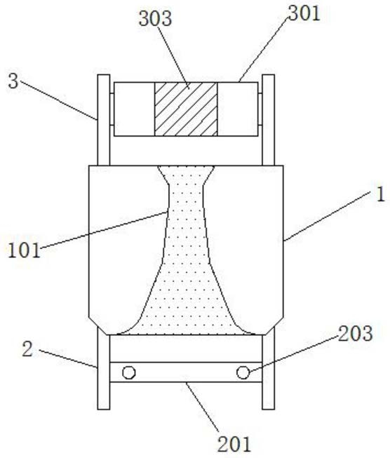 6.根据权利要求1所述的一种钨钢拉伸模胚,其特征在于:所述一号辊筒(301)和二号辊筒(302)表面中部均开设有凹槽(303)。