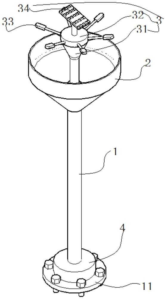 所述防护罩体包括固定连接在灯柱上的锥形部,所述锥形部的顶部具有垂直设置的环形凸出部;