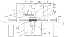 4.如权利要求2所述的一种电线电缆加工用切割装置,其特征在于:所述压块(306)的底部设有凹槽(7),所述凹槽(7)的内壁上粘接有弹性连接块(8),所述凹槽(7)位于限位杆(205)的正上方。
