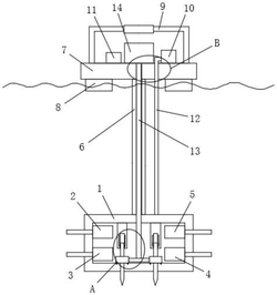 2.根据权利要求1所述的一种浅海区域沉浮式水工建筑物地基监测装置,其特征在于,所述固定柱(6)的顶端开设有转动孔,转动杆(13)转动安装在转动孔内。