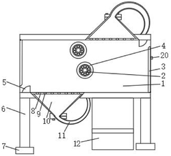 5.根据权利要求1所述的一种印染除尘器,其特征在于:两个所述支撑柱(14)的底部均焊接有加固横板(15),两个所述加固横板(15)的两端均套设有橡皮套(16)。