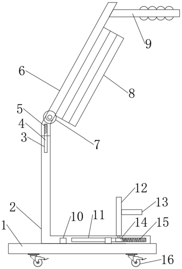 6.根据权利要求1所述的一种大学英语教学用卡片展示装置,其特征在于,所述底座(1)的下侧设置有万向轮(16)。
