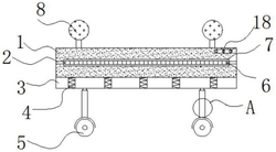 1.一种高精度回转支承滚道测量装置,包括壳体(1)和控制开关(18),其特征在于,所述壳体(1)内侧壁焊接有横杆(2),且横杆(2)为两组,所述横杆(2)之间转动连接有底板(7),所述底板(7)外侧壁固定连接有激光测距仪(6),所述激光测距仪(6)电流输入端连接蓄电池(11)电流输出端,所述壳体(1)内侧壁开设有条形槽(3),且条形槽(3)内侧壁镶嵌连接有阻尼减震器(4),所述壳体(1)底部固定连接有支杆A(12),所述支杆A(12)贯穿有支杆B(14),所述支杆B(14)内侧壁开设有插槽(13),所述插槽(13)内插接有插块(15),所述插块(15)外侧壁固定连接有弹簧(17),所述弹簧(17)内固定连接有拉把(16)。