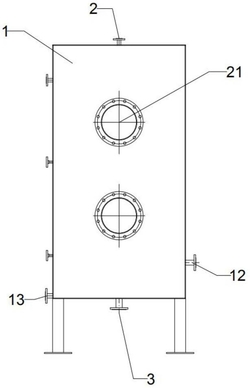 2.根据权利要求1所述的臭氧催化塔,其特征在于:所述第一填料层和第二填料层的两侧均设置有支撑板,所述支撑板上均匀设置有若干直径为20mm的通孔。