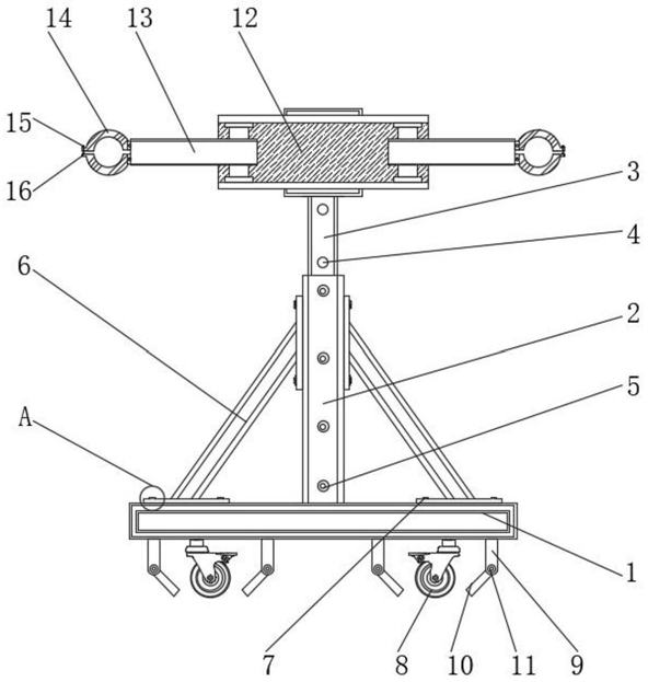 6.根据权利要求1所述的一种建筑栏杆水平承载力检测装置,其特征在于:所述伸缩套(12)通过伸缩杆(13)与卡箍(14)构成伸缩结构,且伸缩套(12)的尺寸大于伸缩杆(13)的尺寸。