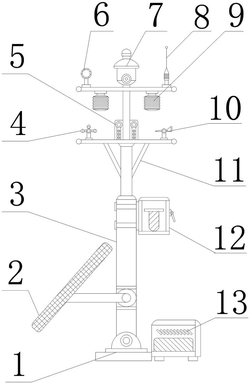 8.根据权利要求1所述的新型路政环保用城市环境监测装置,其特征在于:所述立柱(3)的顶端设置有支架(11),所述支架(11)的顶端设置有红外摄像头(7),所述红外摄像头(7)与所述支架(11)固定连接。