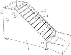 所述振动组件(12)包括一矩形杆(121),所述矩形杆(121)的两端均固定安装有一转轴(122),所述矩形杆(121)的内部开设有两滑槽(123),所述矩形杆(121)的两表面均贯穿有一滑动柱(124),所述滑动柱(124)延伸至滑槽(123)的内部,所述滑动柱(124)位于滑槽(123)内部的一端固定安装有一限位板(125),所述滑动柱(124)的另一端固定安装有一接触杆(126),两所述滑动柱(124)固定安装在同一接触杆(126)上,所述滑动柱(124)的周侧面且位于矩形杆(121)和接触杆(126)之间套接有一弹簧(127)。