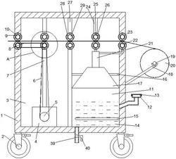 3.根据权利要求1所述的一种帆布鞋面料除皱装置,其特征在于:所述箱体(1)靠近第二内槽(11)一侧的下端贯穿固定连接有进水管(12),所述进水管(12)的顶部螺纹连接有进口盖(13),所述箱体(1)与第二内槽(11)位置相匹配的底部贯穿固定连接有下水管(39),所述下水管(39)下端的一侧侧壁贯穿固定连接有开关(40)。