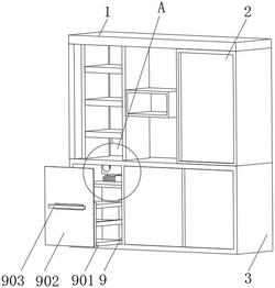4.根据权利要求1所述的一种多功能家庭玄关柜,其特征在于:所述存放架(9)内阵列设有存放板(901),且存放板(901)与存放架(9)固定,所述存放架(9)正面螺纹连接有封闭门(902),所述封闭门(902)正面设有把手(903),且把手(903)与封闭门(902)正面螺纹连接。