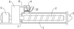 1.一种塑件制造用螺旋挤出成型装置,包括筒壁设有加热器的机筒,机筒内设有挤出螺杆,所述机筒的一端设有挤出头,其特征在于:所述机筒的另一端的壁面设有呈圆柱状的进料筒,所述挤出螺杆上设有控制其做转动的电机,电机与所述挤出螺杆间串接有减速器,减速器具有与所述挤出螺杆相联接的第一输出轴、水平伸入进料筒的第二输出轴,第二输出轴上设有随其做转动的主动摆臂,主动摆臂上转动连接有从动摆臂,从动摆臂上转动连接有滑动连接在所述进料筒内的推块,所述进料筒的筒壁开设有进料口。