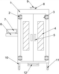 3.根据权利要求1所述的一种酒店用日用品智能柜,其特征在于:所述支撑柱(10)设置数量为四个,且四个支撑柱(10)对称设置,四个支撑柱(10)固定安装在设备主体(1)底部的四周。