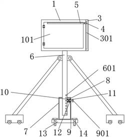 4.根据权利要求1所述的一种建筑工程用空气质量检测装置,其特征在于:所述活动杆(9)的右侧贯穿活动框(7),所述活动杆(9)的右侧固定连接有推把(901)。