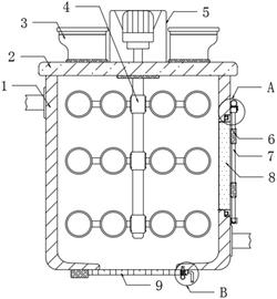 6.根据权利要求1所述的一种玉米淀粉生产中用于玉米浸泡加热的装置,其特征在于:所述盖板(2)顶端两侧均固定设置有进料斗(3),所述挡板(8)左侧四周开设有密封槽且通槽内部右侧四周固定设置有密封环(13)。