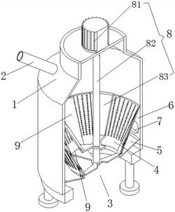 1.一种建筑工程用废水排放处理装置,包括滤桶,所述滤桶上部设有进液管,底部设有出废口,其特征在于:所述滤桶内的底部设有上大下小且呈锥筒状的过滤架,所述过滤架的上端与滤桶的内壁贴合,所述过滤架的底端连接有圆盘,圆盘的外缘与滤桶内壁贴合,其内缘与过滤架底部相衔接,使得过滤架外侧与滤桶内壁的衔接段形成一闭合空间,所述滤桶上设有出液管,出液管通入该闭合空间,所述滤桶上设有浑搅装置。
