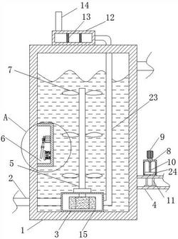 5.根据权利要求1所述的一种铜包钢生产用烘干装置余热回收装置,其特征在于,所述按钮(21)与电机(9)电性连接,所述出水管(4)的顶部开设有两个第四通孔,所述遮挡板(11)通过第四通孔。