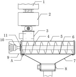1.一种玉米淀粉生产的脱水破碎系统,包括破碎框(5),其特征在于:所述破碎框(5)顶端左侧固定设置有粉碎框(3),所述粉碎框(3)上端固定设置有储存框(2),所述储存框(2)上端固定设置有脱水机构(1),所述破碎框(5)左侧固定设置有安装框(9),所述安装框(9)内部一侧通过安装座固定设置有电机(10),所述破碎框(5)内部固定设置有挤压螺辊(4),所述电机(10)的输出端固定设置有转杆且转杆在远离电机(10)的一端穿过破碎框(5)与挤压螺辊(4)固定连接,所述破碎框(5)底端固定设置有固定滤板(6),所述破碎框(5)底端固定设置有收集框(7),所述收集框(7)底端多层滤框(8)。