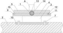 1.一种电流引线固定块,包括引线(1)和安装本体(3),其特征在于,所述安装本体(3)的顶部安装有安装板(10),且安装板(10)的顶部安装有支撑柱(2),并且支撑柱(2)的顶部固定连接有第一固定板(4),所述第一固定板(4)上设有第二固定板(5),所述第一固定板(4)的两侧顶部分别开设有安装槽(15)和滑槽(11),所述第二固定板(5)的两侧分别固定连接有锁扣(9)和滑扣(12)。2.根据权利要求1所述的一种电流引线固定块,其特征在于,所述安装板(10)嵌设于安装本体(3)的顶部,所述安装板(10)的顶部两侧贯穿安装有紧固螺栓(7)。3.根据权利要求1所述的一种电流引线固定块,其特征在于,所述锁扣(9)可嵌设于安装槽(15)内部,所述滑扣(12)可滑动安装与滑槽(11)的上部。4.根据权利要求1所述的一种电流引线固定块,其特征在于,所述第一固定板(4)和第二固定板(5)的中部均安装有固定套(13),且固定套(13)的内侧分别固定连接有多个抵压块(14)。5.根据权利要求4所述的一种电流引线固定块,其特征在于,所述抵压块(14)分别位于引线(1)的外部,所述抵压块(14)为硅胶材质制成。6.根据权利要求1所述的一种电流引线固定块,其特征在于,所述第二固定板(5)的顶部安装有拉板(6),且拉板(6)的中部开设有夹孔(8)。