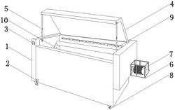 4.根据权利要求1所述的一种农产品加工清洗机,其特征在于,所述搅动装置(10)由转轴一(101)、转轴二(102)和清洁柱(103)组成,所述清洁柱(103)表面固定连接有毛刷(15),所述转轴一(101)通过螺丝和长条形固定连接若干根清洁柱(103)顶端,且清洁柱(103)另一端通过螺丝和长条形固定连接转轴二(102),且转轴二(102)转动连接机体(1)内部左侧内壁中间位置。