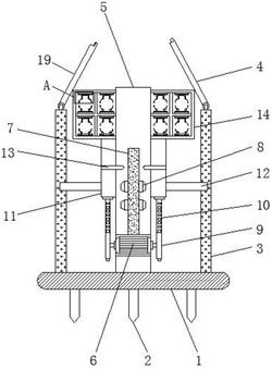 2.根据权利要求1所述的一种基于配电网架的配电网规划装置,其特征在于:所述第一挡板(4)与第二挡板(19)关于底座(1)中心对称设置,且第一挡板(4)与第二挡板(19)与固定板(3)构成转动结构。