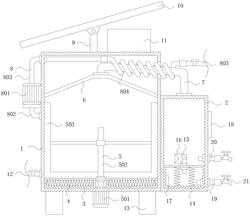 6.根据权利要求5所述的一种利用太阳能的海水淡化装置,其特征在于:所述集水箱(2)的一侧固定安装有热水管(19)和冷水管(20),热水管(19)和冷水管(20)的一端均固定安装有连接器,连接器的一侧固定安装有出水龙头,热水管(19)的另一端贯穿集水箱(2)并延伸至加热箱(14)的内部,冷水管(20)的另一端延伸至集水箱(2)的内部,进水管(805)和排水管(12)上设置有单向阀。