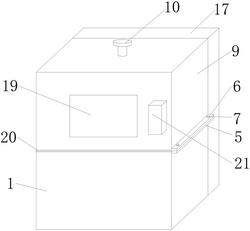 1.一种带有温度监测功能的智能电表,其特征在于:包括壳体(1),所述壳体(1)左侧侧壁顶端转动连接壳盖(9)左侧侧壁底端,所述壳体(1)顶端侧壁和壳盖(9)底端侧壁均填充有橡胶垫(20),所述壳体(1)外壁右侧顶端固定连接第一固定块(5)左侧侧壁,所述壳盖(9)外壁右侧底端固定连接第二固定块(6)左侧侧壁,所述第一固定块(5)和第二固定块(6)通过两个固定螺栓(7)固定连接,两个所述固定螺栓(7)的一端分别螺纹连接第一固定块(5)和第二固定块(6),且两个所述固定螺栓(7)的另一端分别螺纹连接固定螺帽(4),所述壳体(1)顶端侧壁分别搭接壳盖(9)底端侧壁,所述壳盖(9)外壁前侧中心处固定连接显示屏(19),所述壳盖(9)外壁前侧右端固定连接警报器(21)。