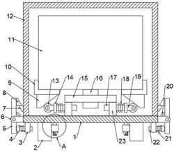 1.一种便于拆卸安装的冷风机外壳,包括底座(1),底座(1)的底部设有支腿(2),其特征在于:所述底座(1)上设有壳体(12),壳体(12)内设有机体(11),底座(1)的上侧设有用于承载机体(11)的角托(10),机体(11)的底部固定有导向柱(16),底座(1)上固定有第二支块(23),第二支块(23)上连接有导向板(15),导向柱(16)滑动设置在导向板(15)上,第二支块(23)上设有用于承托角托(10)的承托组件,底座(1)上设有用于锁定壳体(12)的锁止组件。2.根据权利要求1所述的便于拆卸安装的冷风机外壳,其特征在于:所述锁止组件包括安装座(6)、锁止杆(5)和第一滑杆(22);所述底座(1)上安装有安装座(6)和第一支块(3),锁止杆(5)铰接在安装座(6)上,锁止杆(5)的顶端固定有第二卡块(8),壳体(12)的侧壁上设有与第二卡块(8)配合的第一卡块(7),第一滑杆(22)滑动设置在第一支块(3)上,第一滑杆(22)朝向锁止杆(5)的一端设有半球块(4),半球块(4)与第一支块(3)之间设有第一压簧(21),第一压簧(21)套设在第一滑杆(22)上,安装座(6)上固定有用于限定锁止杆(5)角度的顶杆(20)。3.根据权利要求1所述的便于拆卸安装的冷风机外壳,其特征在于:所述承托组件包括楔形块(9)、转轮(13)和第二滑杆(17);所述第二滑杆(17)滑动设置在第二支块(23)上,第二滑杆(17)上固定有挡块(14),挡块(14)与第二支块(23)之间设有第二压簧(18),第二压簧(18)套设在第二滑杆(17)上,挡块(14)上安装有轮座(19),转轮(13)设置在轮座(19)上,楔形块(9)固定在角托(10)的底部。4.根据权利要求1‑3任一所述的便于拆卸安装的冷风机外壳,其特征在于:所述底座(1)的底部固定有插杆(27),支腿(2)上设有供插杆(27)穿过的插套(26),插杆(27)上开设有凹槽(24),凹槽(24)内铰接有止退杆(25),且止退杆(25)与凹槽(24)的内壁上连接有第三压簧(28)。5.根据权利要求2所述的便于拆卸安装的冷风机外壳,其特征在于:所述壳体(12)上开设有通风孔(31),通风孔(31)上设有防尘网(30),壳体(12)上固定有用于卡住防尘网(30)的L型座(29)。