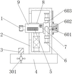 4.根据权利要求2所述的激光超级标尺标刻机,其特征在于:所述活动块(302)的顶端设置有滑槽,所述活动块(302)分别与第一螺纹杆(303)和第二螺纹杆(304)构成螺纹连接。