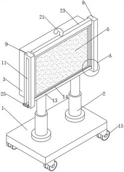 2.根据权利要求1所述的一种防护效果好的广告服务用显示屏,其特征在于:所述底座(1)的下表面四角处均固定连接有滚轮(15),所述滚轮(15)的数量为四个。
