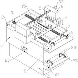 3.根据权利要求1所述的一种板材自动切割装置,其特征在于:所述第一电机(8)输出轴、第二电机(24)输出轴原理第一电机(8)、第二电机(24)一端设有第一主轴支撑架、第二主轴支撑架,所述第一主轴支撑架、第二主轴支撑架顶部设有与第一电机(8)输出轴、第二电机(24)输出轴相对应的凹槽,所述第一电机(8)输出轴、第二电机(24)输出轴卡在凹槽中。