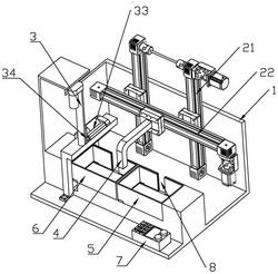 S23、Y轴伺服电机工作,Y轴滑块沿Y轴滑轨移动且当移动至Y轴上限位开关处时停止运动,然后X轴伺服电机工作,X轴滑块沿X轴滑轨移动且当移动至X轴出限位开关处时停止运动,接下来Y轴伺服电机工作,Y轴滑块沿Y轴滑轨移动且当移动至Y轴下限位开关处时停止运动;