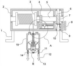 5.根据权利要求4所述的地下水检测用取样装置,其特征在于,所述标记机构还包括套设固定在旋转轴(5)上的主动齿轮(4),主动齿轮(4)上啮合连接有从动齿轮(18),所述从动齿轮(18)与螺纹杆(22)同轴固定,所述支撑架(2)上横向固定有导杆(20),导杆(20)上滑动套设有与螺纹套块(21)固定的滑套(19)。